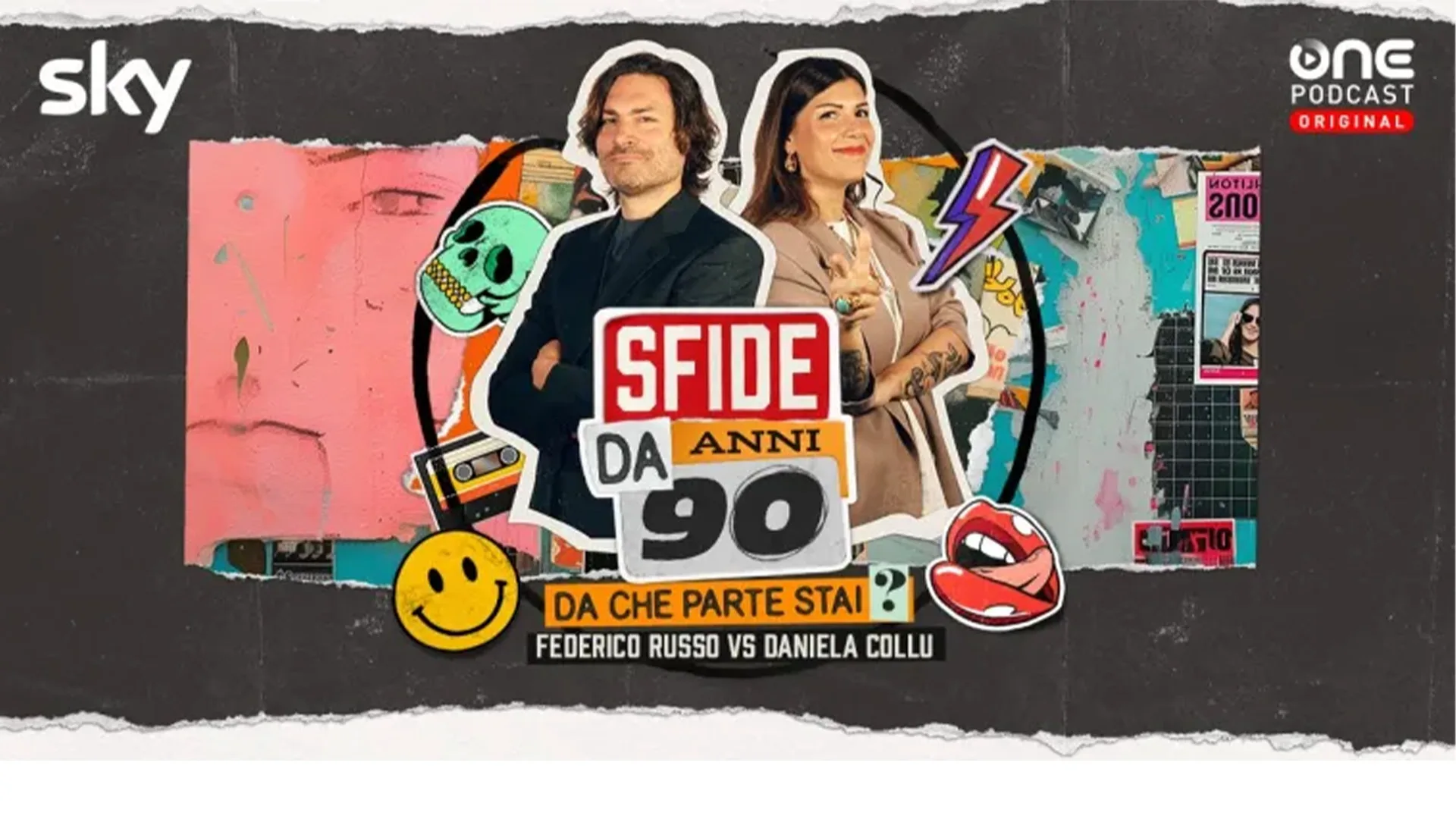 Guarda oraCondotto da Federico Russo e Daniela Collu, Sfide da 90: Da che parte stai? È il nuovo podcast originale di Sky Italia realizzato da One Podcast per rivivere le emozioni degli anni '90. In ogni episodio i conduttori avranno un ospite speciale del mondo Sky con cui decreteranno le icone più rappresentative dei mitici anni ’90.